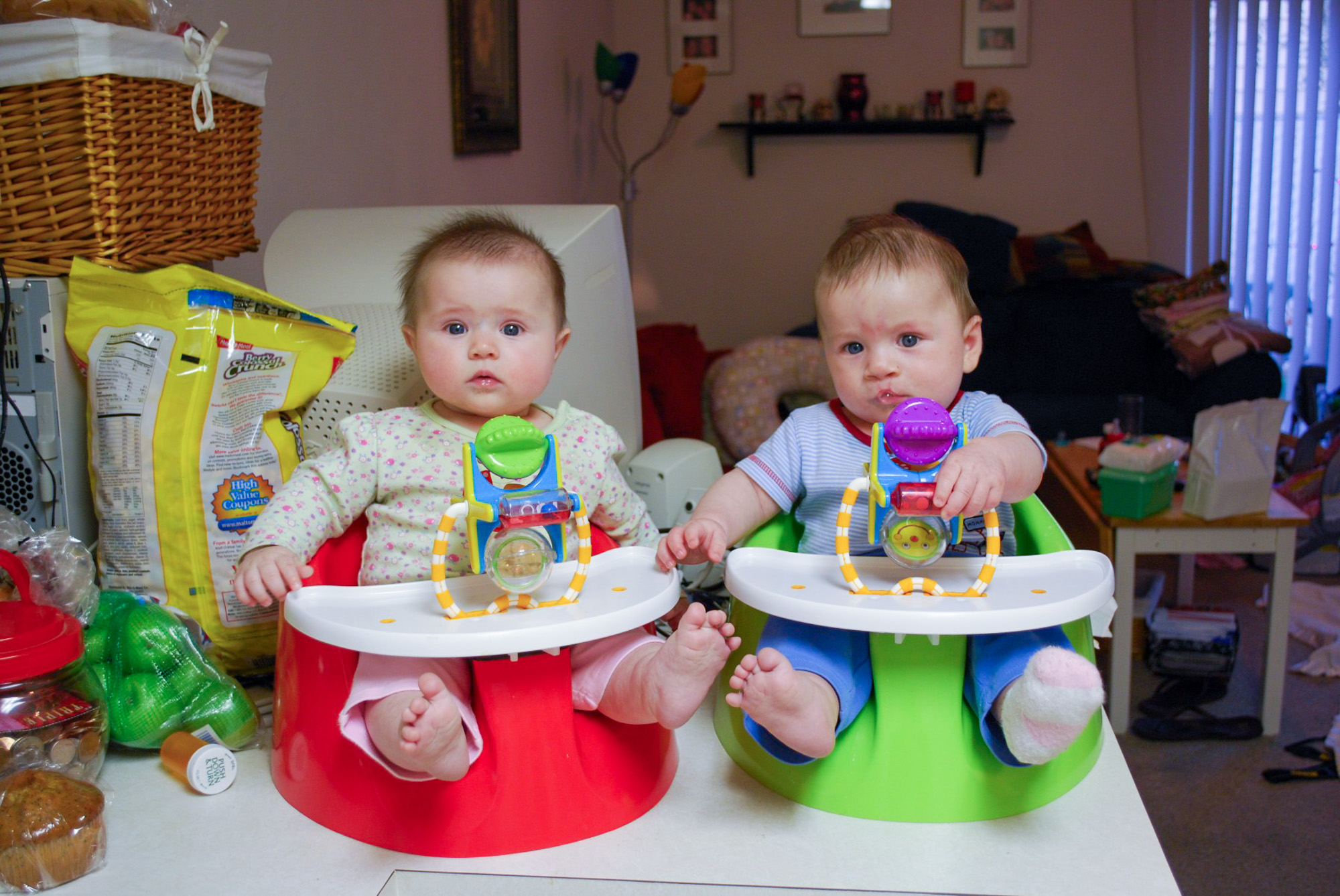 I loved these bumbo seats. It was so nice to set the kids in. We could feed them in it and they could entertain themselves.