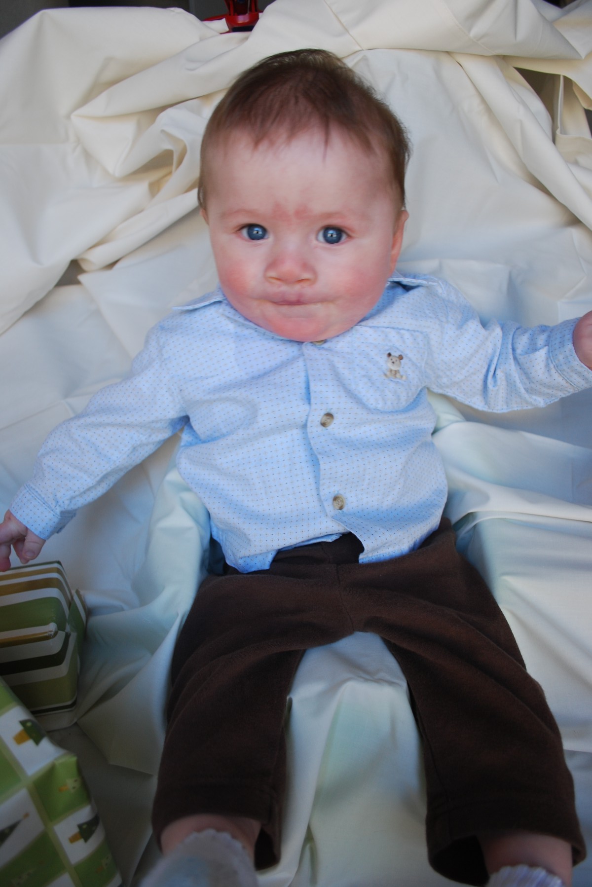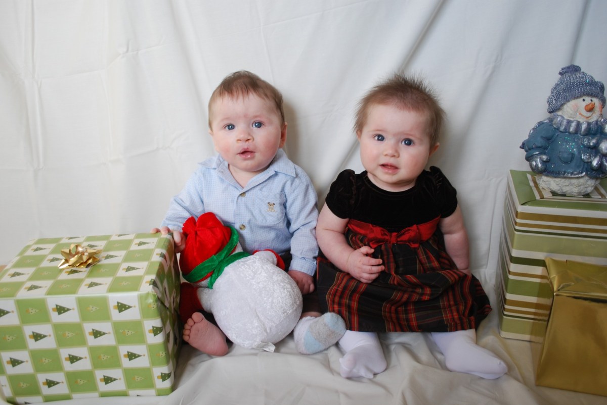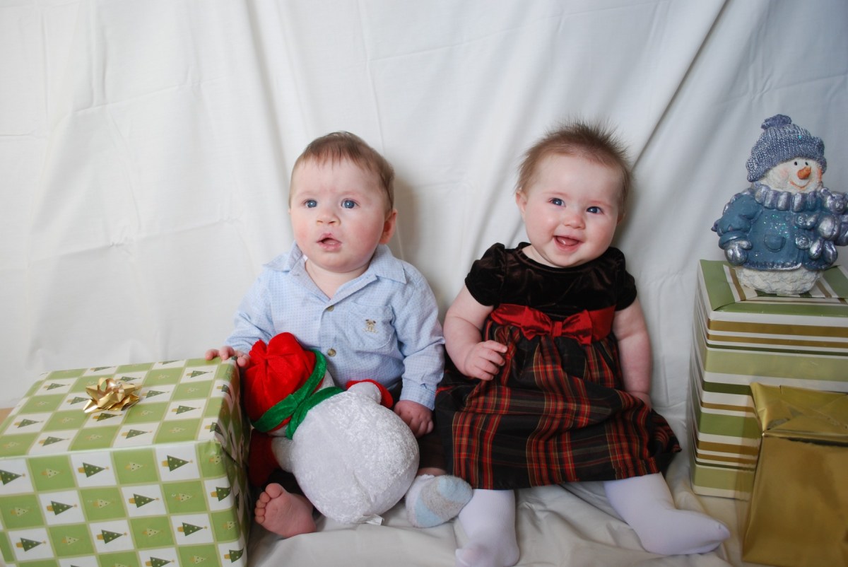 So I took the babies photos this year for our Christmas cards (which I have not put in the mail yet but that is the goal for tonight). I tried to first take their photos all dressed up, Jaelee in her adorable little Christmas dress and Jayse in his button up shirt and dress pants. But……they spit up on them slobbered on them and somewhere along the line Jayse lost one of his socks. Let’s just say we were all frustrated…….