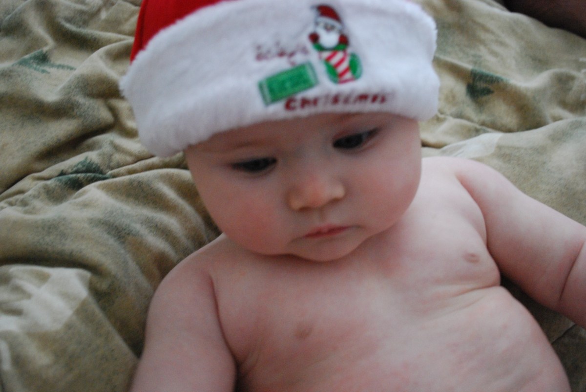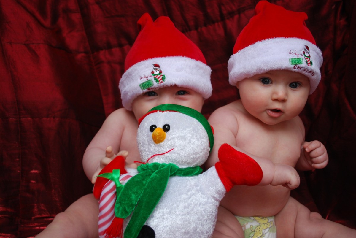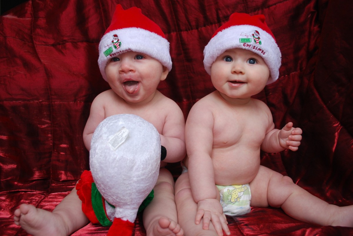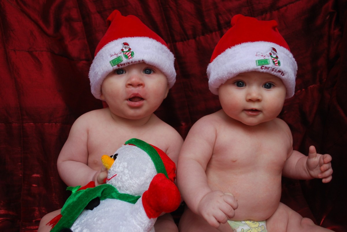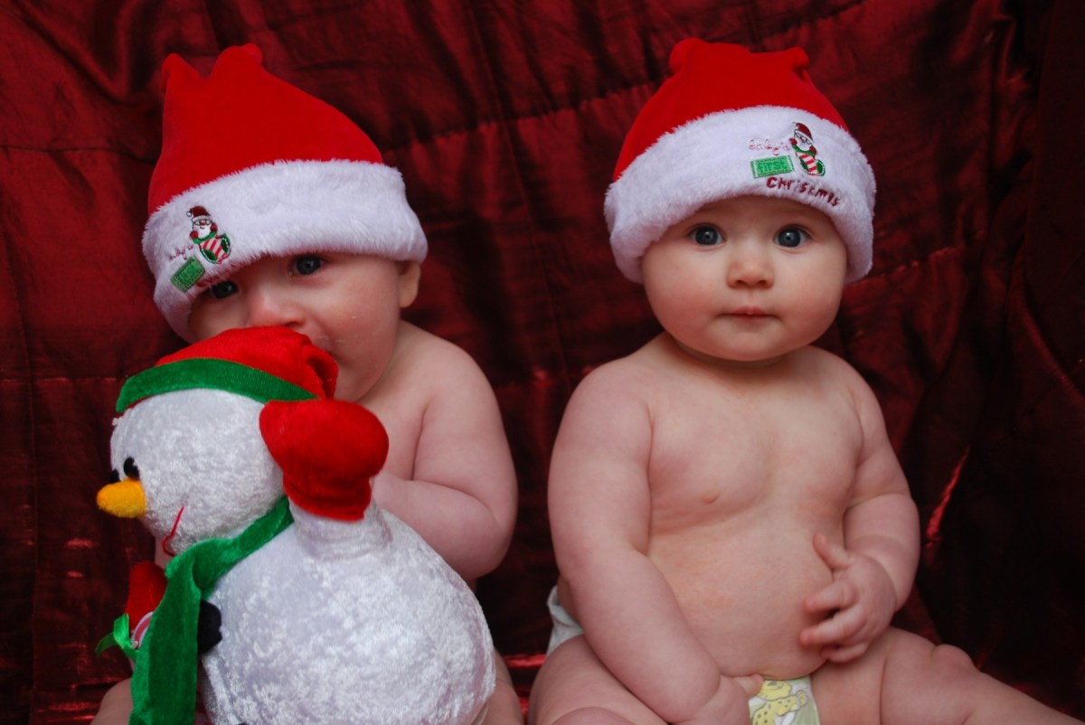 After attempting to get the twins photos done in their nice clothes and failing. I had seen this idea of just shooting babies in a diaper because you can just wipe off slober. I found some Santa hats and thought it would be cute to put them on them in diapers and get photos.