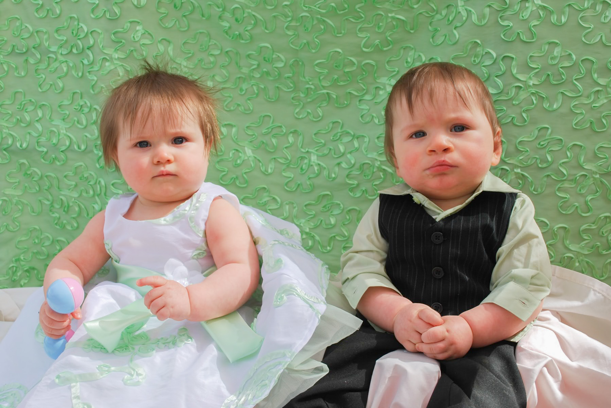 I got the kids ready in their Easter clothes and put them in their crib to keep them from crawling away.