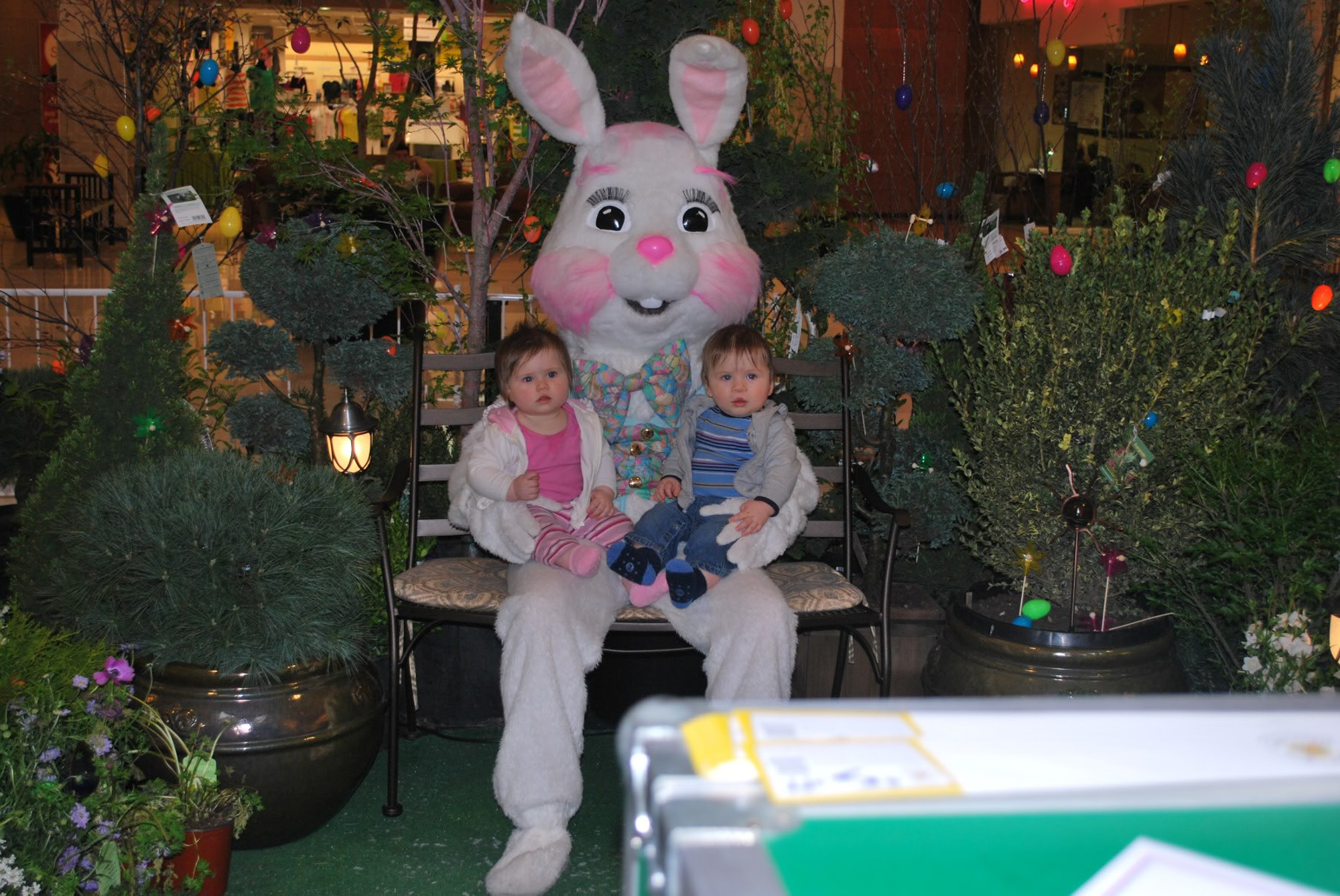 April 5, 2009August 27, 2025 Easter Bunny Visit The twins had a great first Easter. We took them to the mall to sit on the Easter Bunny’s lap. Jaelee didn’t know what to think and Jayse didn’t seem to mind. Share this: Click to share on X (Opens in new window) X Click to share on Facebook (Opens in new window) Facebook Like Loading...