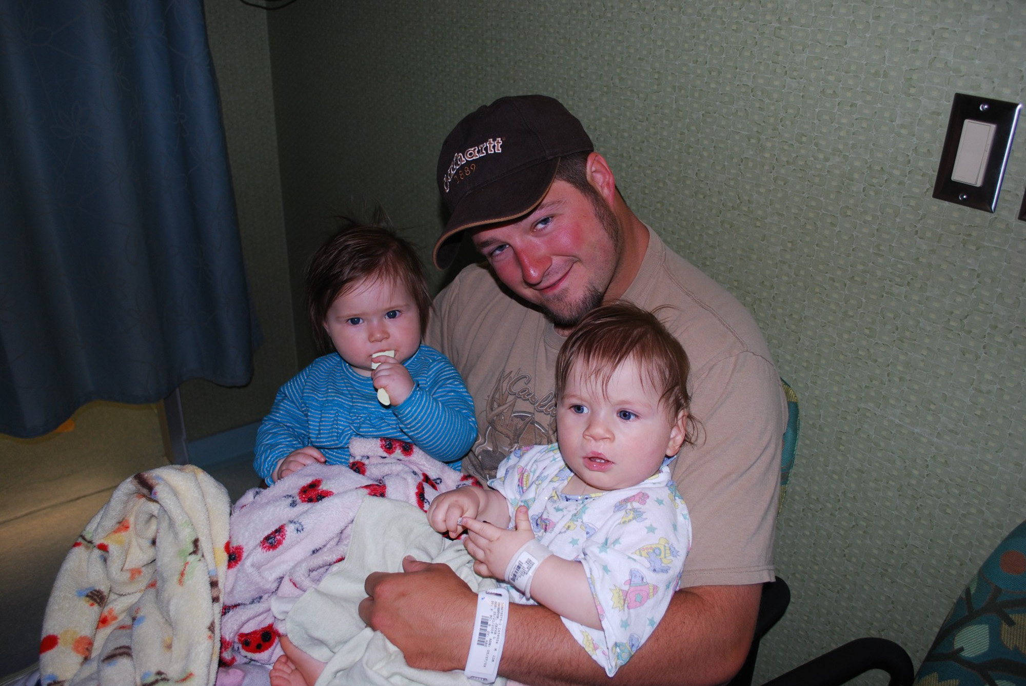 We were hoping to go home that day by 4 but Jayse hadn’t drank enough on his own early enough in the day. We managed to get him to drink about 8 oz’s at about 7 but the nurse thought it was too late so they hooked him back up to the iv and told us we were going to have to stay another night. I was going to stay with Jayse but he became such a daddy’s boy that he cried whenever Greg wasn’t around so we both had to stay. We were trying to get Jayse to sleep that night but he was kicking and thrashing around and he managed to kick the iv out of his foot, the nurse came in and looked at it and said she needed to call the Dr. to see if he wanted her to try and put it back but instead we got great news. The Dr. said since he managed to drink 8 oz on his own that we could go home. So finally at about 10 o’clock Friday night we got to take Jayse home. The night was hard again but definitely bearable since we were at home.
