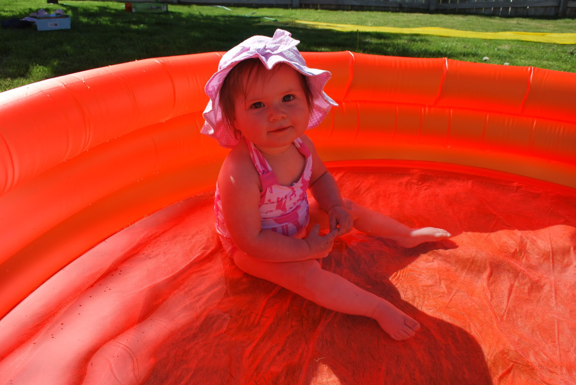 (Jaelee liked the water right away but didn’t want to put her arms in it)