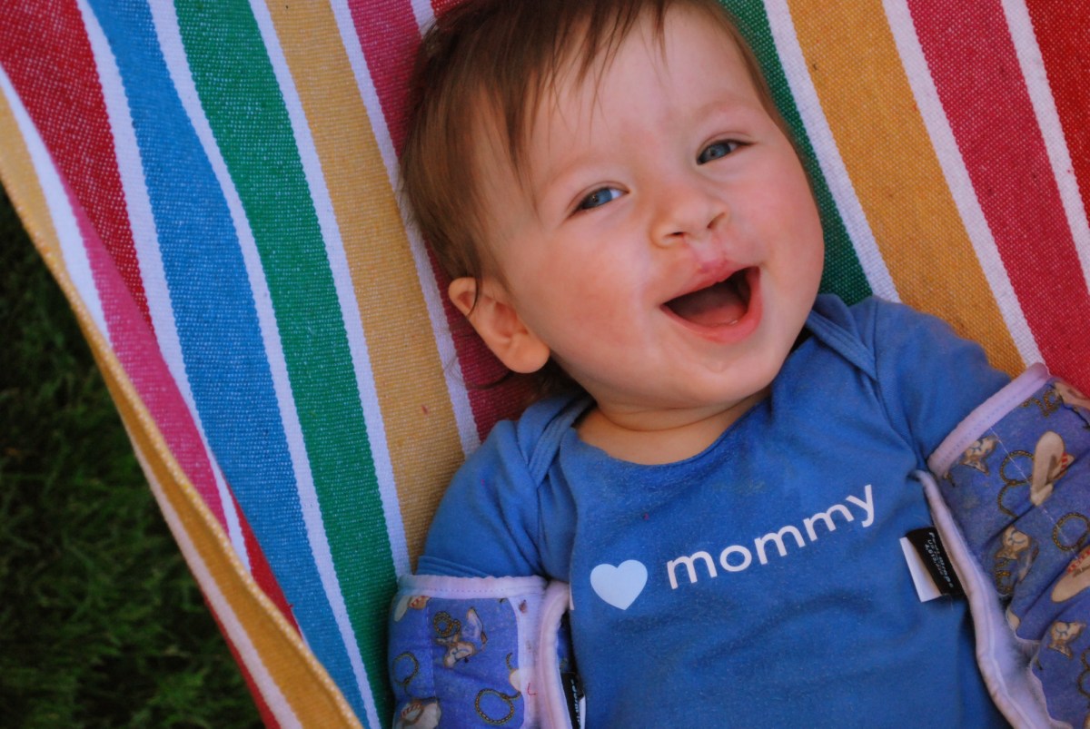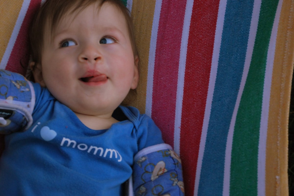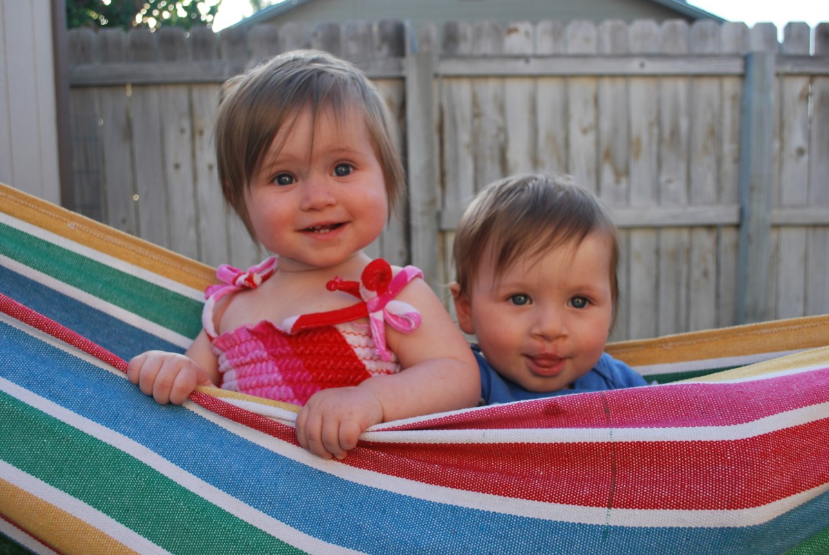 At the last minute we decided we wanted to have a party for the twins because Jayse was getting his arm splints off and was going to be able to eat again. So Tuesday night I was making invitations and planning their party for Saturday. We took the twins outside and put them in the hammock to get some pictures for their invitations. Trying to get a picture of the two of them both looking at the camera and smiling is almost impossible so after almost 30 pictures we decided to just do single photos.