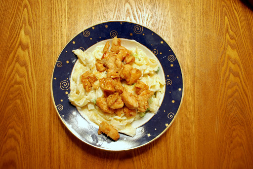 I love this dish from Smoky Mountain Pizza and Pasta. It’s chicken fettuccine alfredo with a twist. The chicken is cooked in teriyaki sauce. I love it but it is pretty expensive to take the whole family there and eat so I came up with my own teriyaki chicken fettuccine alfredo. It is super fast, simple and cheap to make. First I start by cooking boneless skinless chicken breasts. While that is cooking I start the pasta – we just buy pasta roni, 2 boxes – just follow the directions on the box for making this. Then I steam some broccoli – you can add whatever veggies you want we just prefer broccoli. At the restaurant they added mushrooms, broccoli, and something else but I don’t remember what. When the chicken is cooked I cut it up into small pieces and then put it back in the pan and pour the teriyaki sauce over it and stir it around to make sure it’s evenly coated. That’s pretty much it. I stir the broccoli into the pasta and dish it up and then put the chicken on the top. We all love it and total I would say it costs less then $7. It’s a great main dish or side dish.