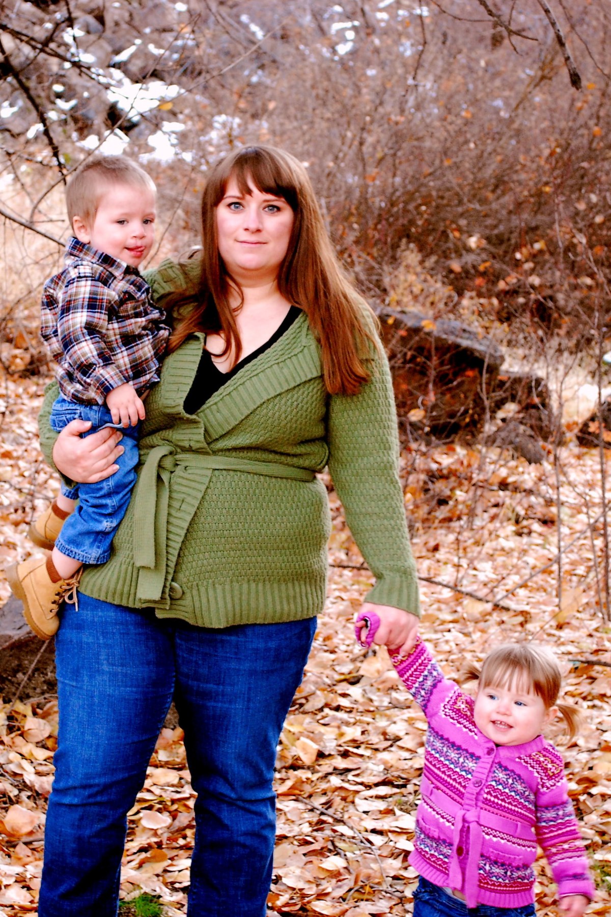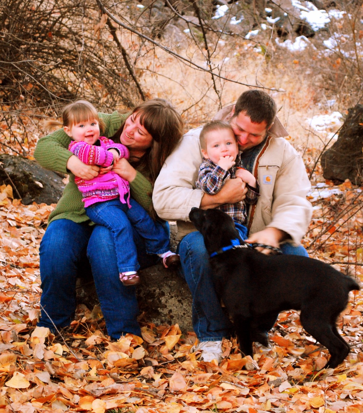 Now that fall is officially here I wanted to get some new family photos done. Greg so graciously got his hair cut and shaved – I cut Jayse’s hair, I cut Greg’s hair once and thought I did an ok job but he says it will never happen again so he had a professional do his. Anyway once we were all schnazy looking we went out into the woods with tripod and camera in hand. I wanted to go back to this bridge I found a couple of weeks ago when I took my brothers senior pictures but when we got to it it was covered in snow. I didn’t even think about snow being up there. Luckily we found this spot and were able to get some great photos. So here are a few of them. I posted the rest of them on our flickr account. The link to that is on the side of my blog.