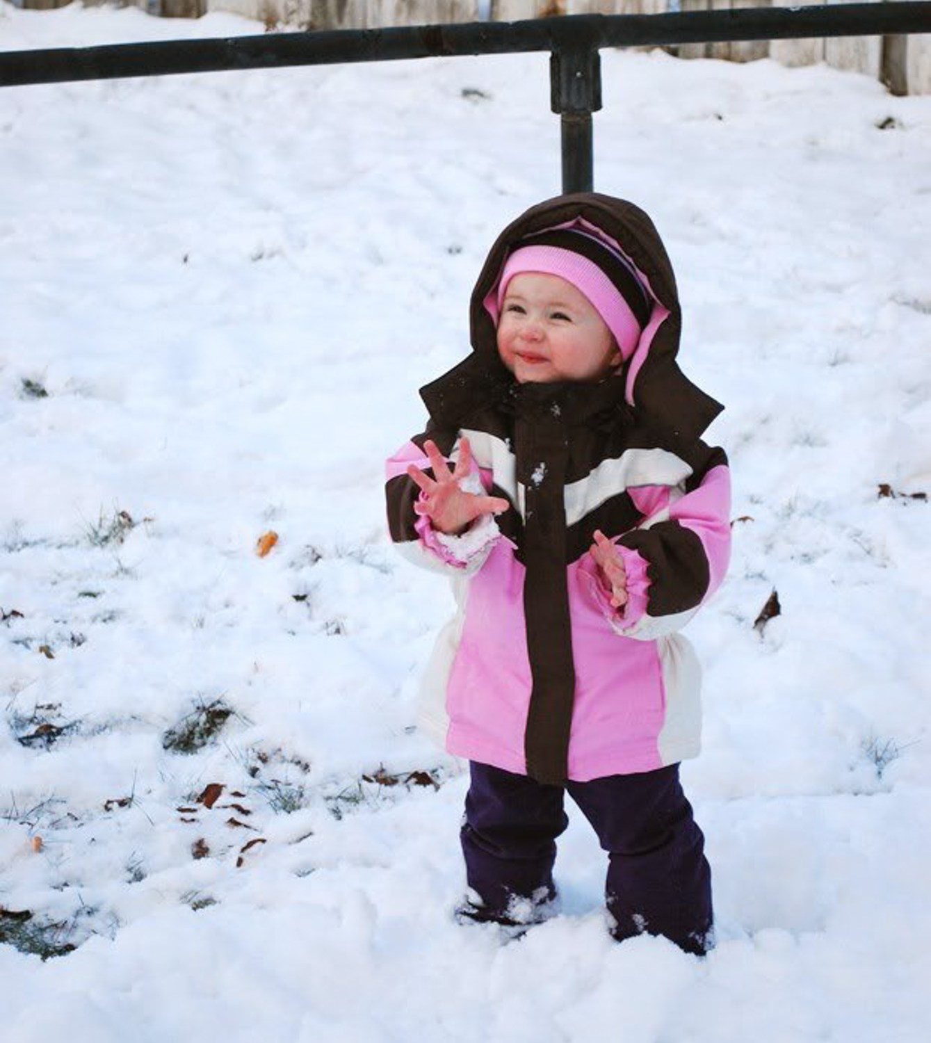 A few days after the we got our first snow of the season it snowed again but much more. We bundles the kids up and took them out to play it in it again. Jaelee immediately put the snow in her mouth – no surprise. I don’t think Jayse was sure about the snow.