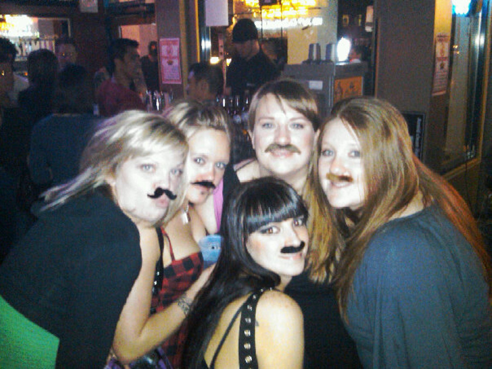 Every year for my sisters birthday she has a different theme. It had been 80’s themed, big eyelashes themed, dress up themed, and uni-brow themed. The last couple of years I have missed it. I was pregnant one year and in Vegas last year. This years theme was mustaches. We went out to dinner and then went downtown for some drinks. Here is the crew with all our mustaches.