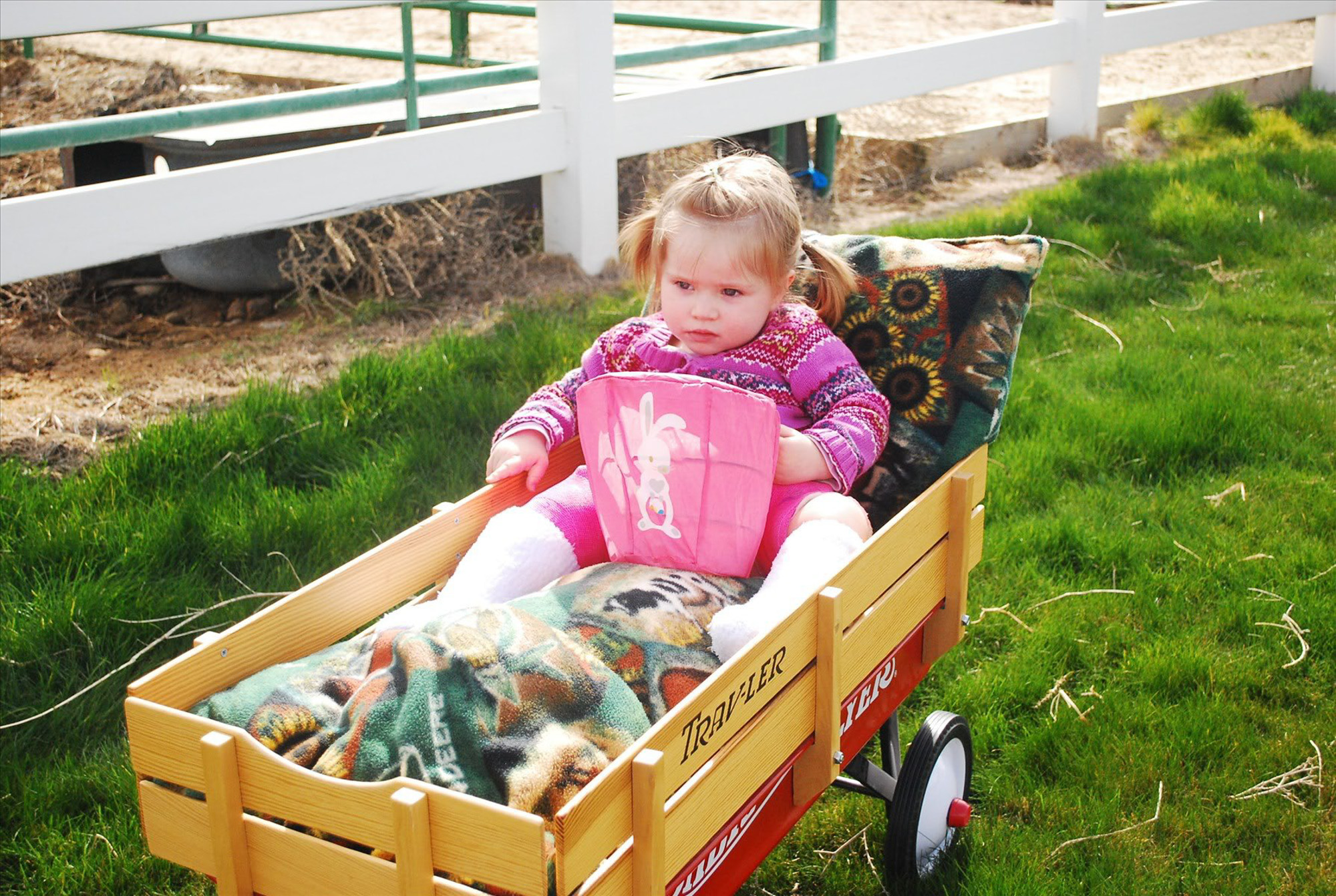 We had a great Easter, we went out to my Aunts on Saturday for the annual Easter Egg hunt. It is a lot of fun to see my cousins and family. The kids always have such a fun time. The big kids go and hide the eggs while the little kids wait excitedly to go hunt. Each of the kids got to find 28 eggs!! Poor Jaelee and her cast I pulled her around in a wagon and she helped to point out the eggs. My mom and brothers helped Jayse find his. After the hunt we got to see all our treats in our eggs and eat a great dinner.