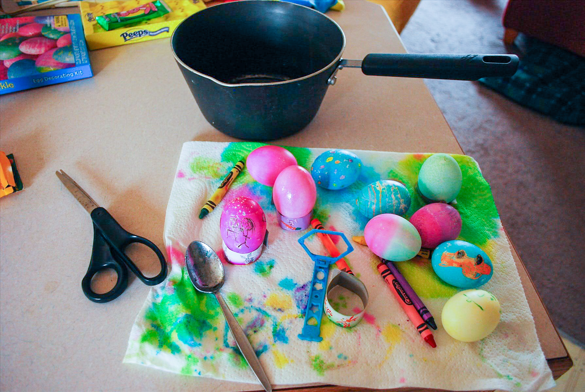On Sunday my mom, brothers and sister came over to have lunch and color eggs. I just love HAM and potatoes. The twins got play dough for Easter and some Spongebob jammies. Hope everyone else had a great Easter.