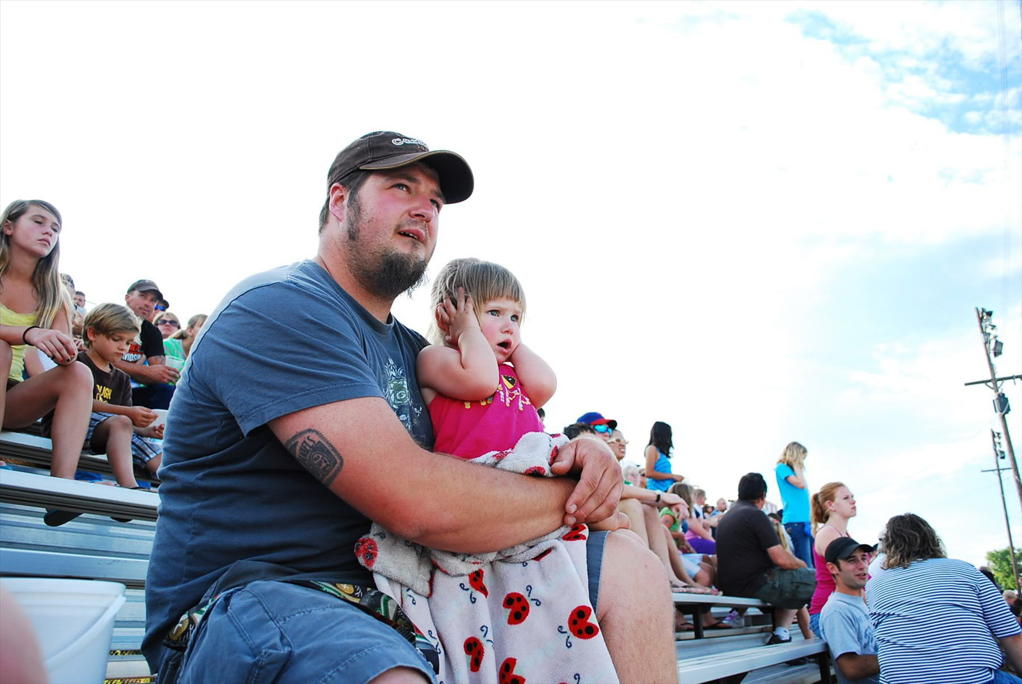 My mom had a knee replacement surgery and was in the hospital for over a week, while she was there my brothers watched the kids – and are still watching them (THANK YOU brothers). As a thank you (well sort of we got the tickets for free) we took them and the twins to the Speedway to watch some race cars. Jayse LOVES anything to do with cars and he watched the cars some of the time but a lot of the time he was playing with his own little car running it along the bench seats. Jaelee of course hated the loud noises and covered her ears in the beginning but then I think she got used to the noise and she ran around like a wild woman. After the races we went to the pit and looked at the cars. All in all it was a pretty fun night.