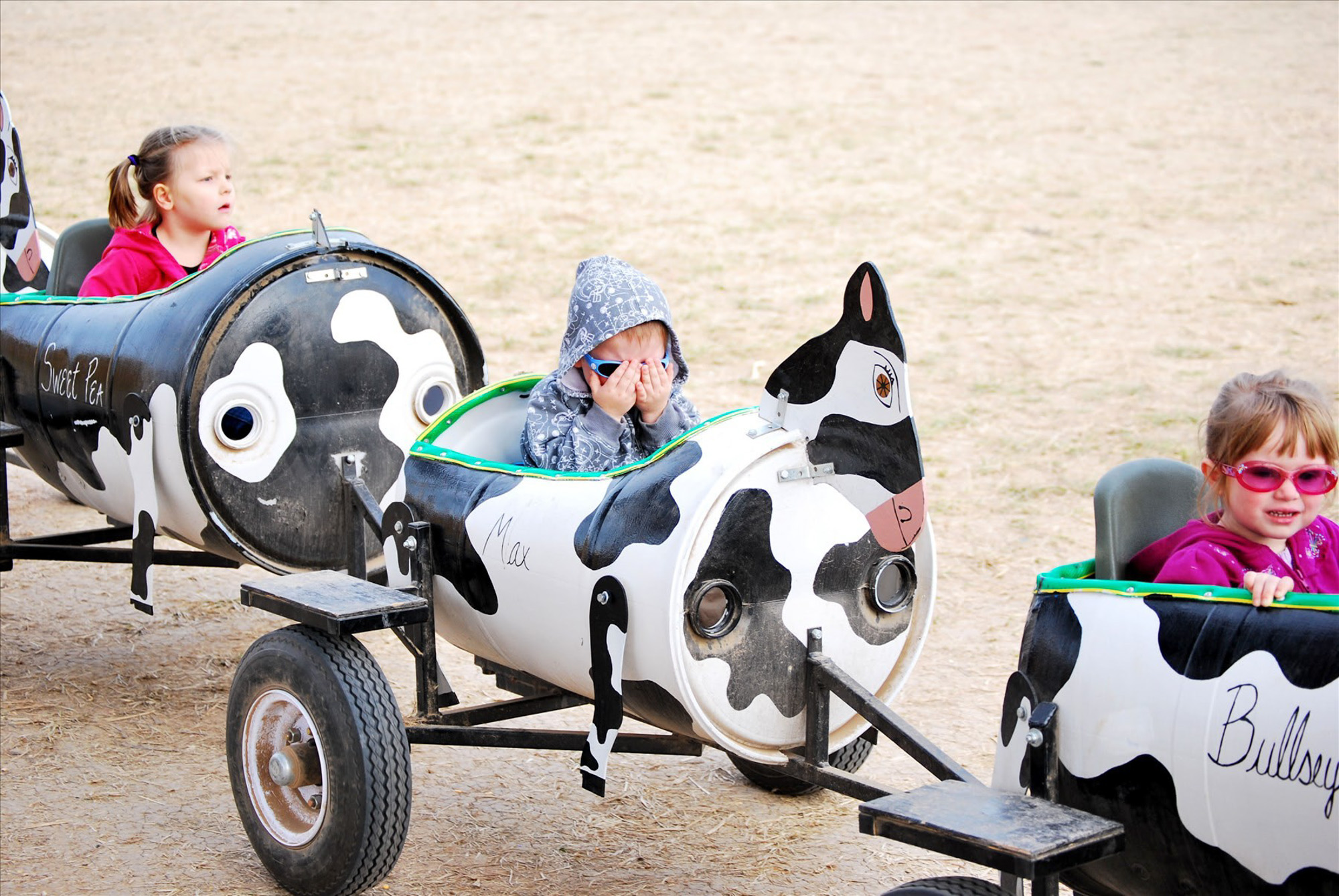 Next we went over to the cow train. I thought the twins would really like it but the second we put Jayse in his cow he started crying. Jaelee was ok until they pulled away from us and then I could see her crying. All the other kids seemed to like it.