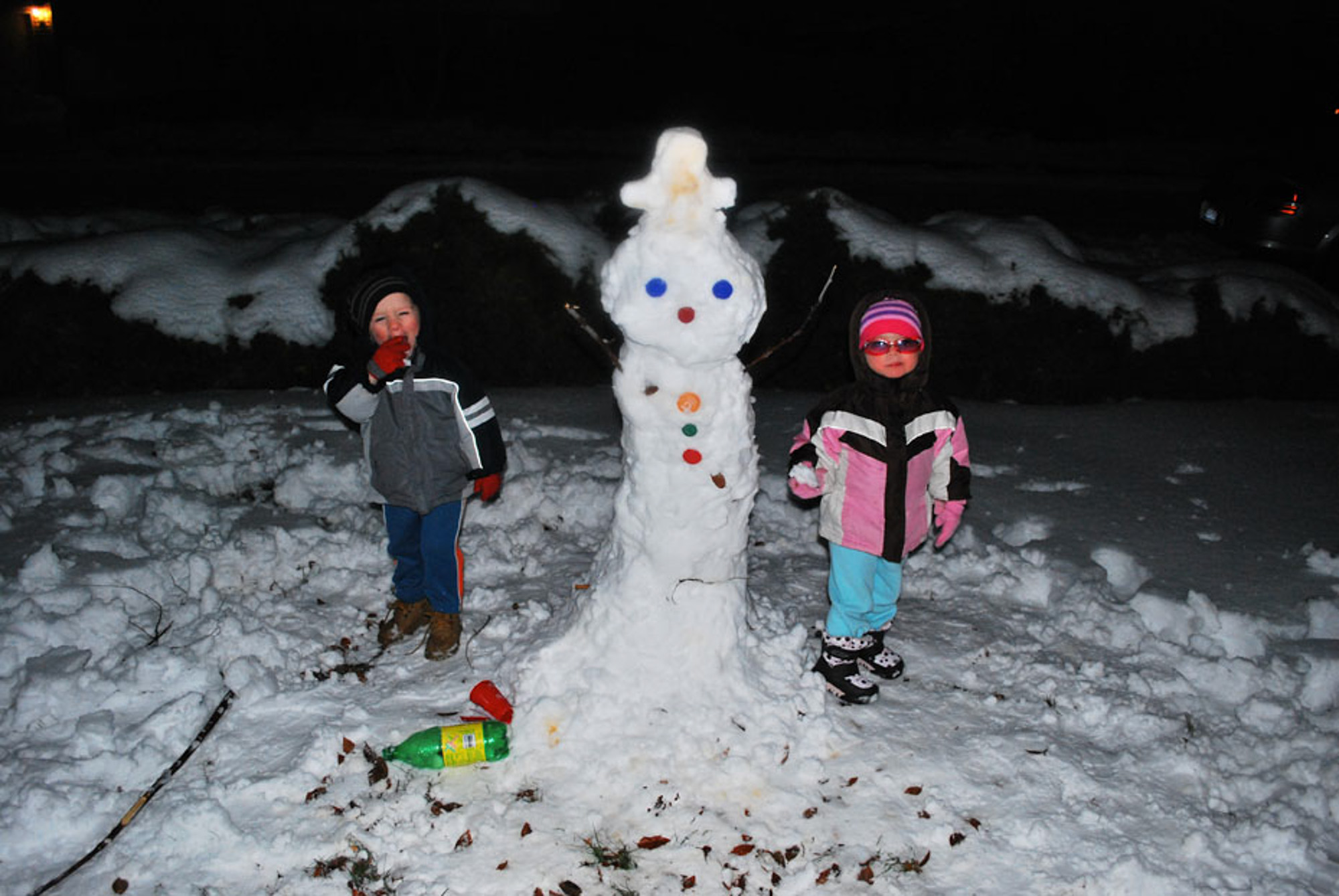 We had a pretty big snow storm. One of the largest single snow falls in the last 10 years. I couldn’t let all that snow go without playing in it. Unfortunately we had to wait until I got off work and by that time it is dark but we still had some fun. My brother was at our house because schools had been closed and he made a nice little snow man. The twins loved throwing the snow and Jaelee of course loved eating it.
