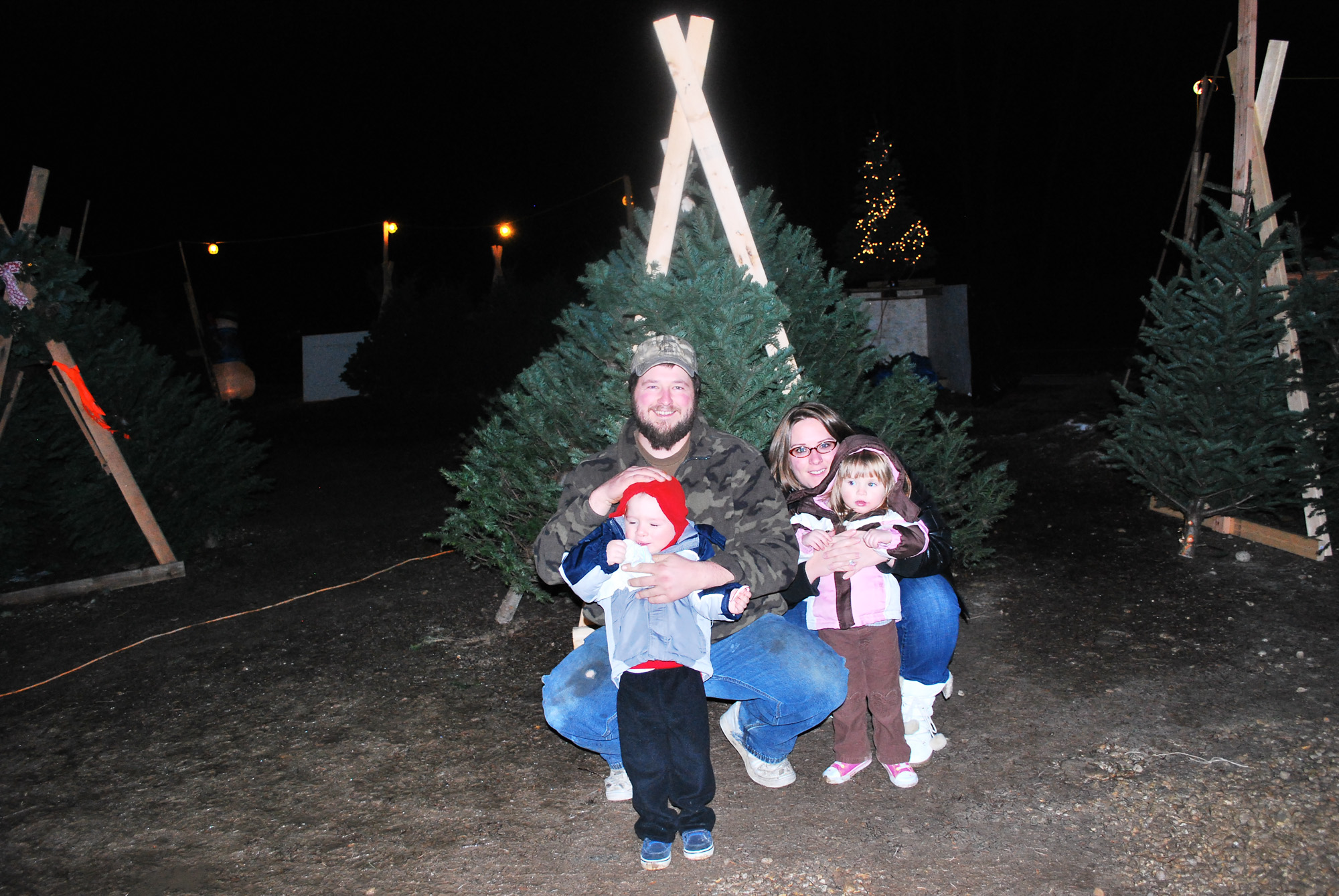 We found a place selling trees where they were the farmers of the trees and the prices were awesome. We got a 7 foot tree for $22 and it looks really nice. The guy working there was very friendly, he took our picture for us and gave the twins candy canes.