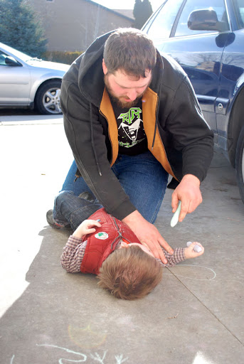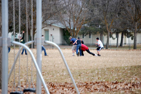 For super bowl Sunday Greg and some friends played football and the twins and I played at the park. In the picture below Greg is the one being tackled. He was swore for days.