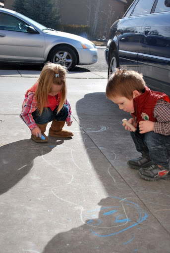 I decided I wanted to take some pictures of the twins since the last ones I had were at Christmas. I took some pictures of them and it was warm enough outside we stayed out there and drew on the driveway with chalk.