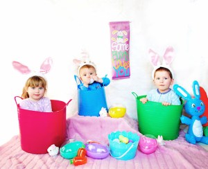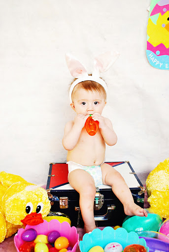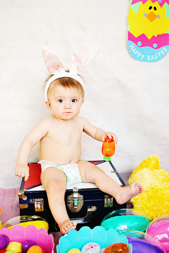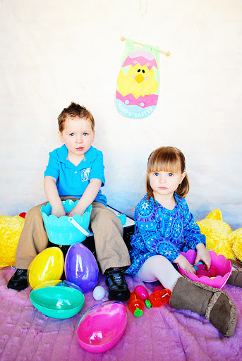 This year we decided to do Easter pictures. I tried the twin’s first Easter and it turned into a disaster so last year I passed on the pictures. This year since Brandi has Jayden we decided to try again with all 3. I got really excited and went a little overboard on props. Thank goodness for the dollar store.