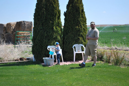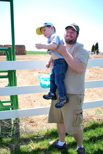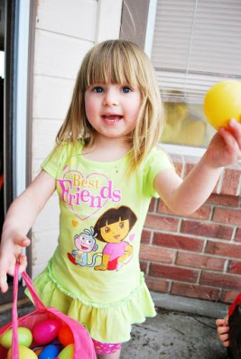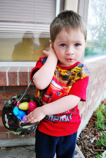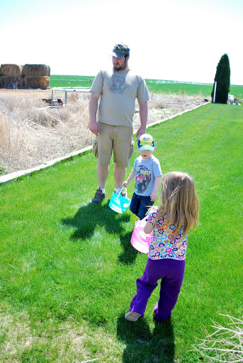We had a quick Easter egg hunt in our yard.  They both found a lot of eggs.