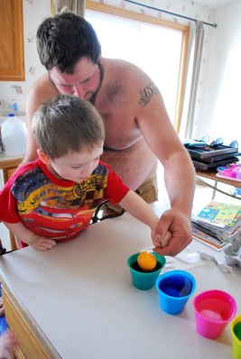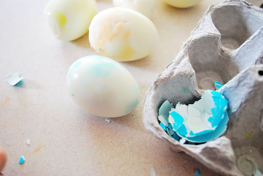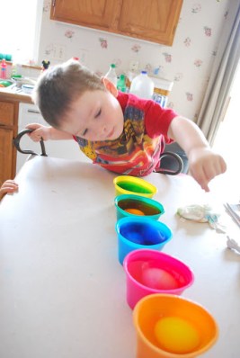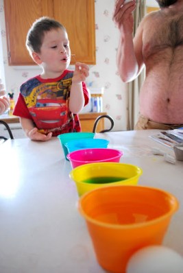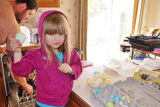 Jaelee helped me peel the eggs.  She did one all by herself.  She cracked it and peeled the whole thing.  We were both very proud.