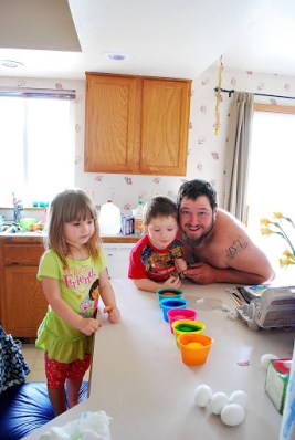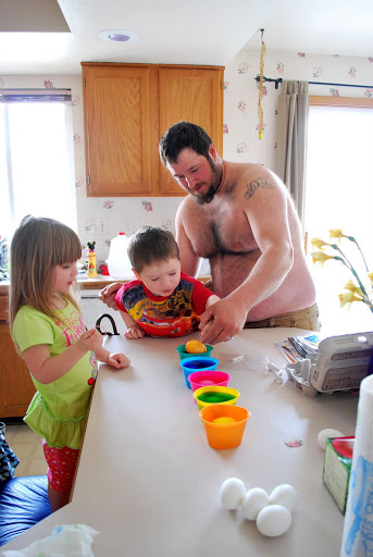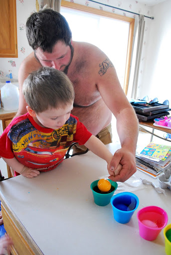 On Sunday we had a big Easter breakfast and then colored eggs.  The twins were so cute this year coloring eggs.  We made some good ones.  You can see Greg’s egg on the side of my blog.  I loved it so much I decided it can hang around on the blog for a while.