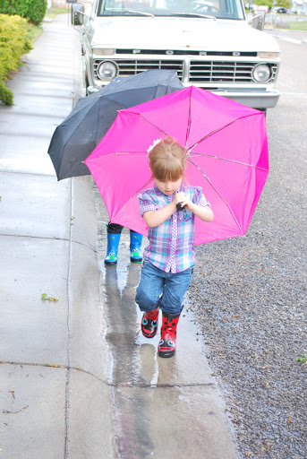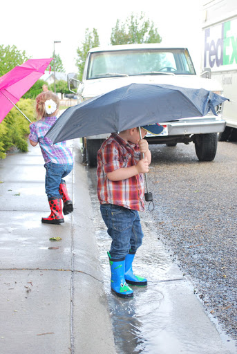 It seems like the rain is never going away. So we will just learn to play in it. The twins had their three year check up and I took off work early to take them. It was the easiest visit we have ever had. The Dr. & nurse were really glad to see my kids smiling and not crying. Anyway back to the rain. Since I had taken off work early I wanted to play outside but it was raining. So I put the twins rain boots on the them and we went outside to play in puddles with our umbrellas. It makes for some cute pictures. By the way their birthday pictures are coming I haven’t had a chance to go through them yet. We had a great time!
