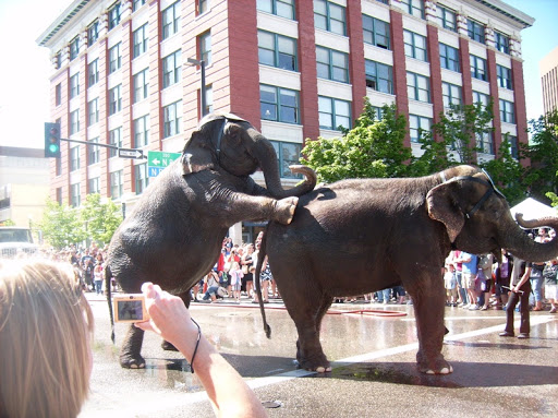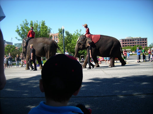 While we were in Washington visiting Amy Jayse and Greg stayed home. Saturday they went to a parade for the circus that was in town. It looks like it was really cool. It had elephants that performed.