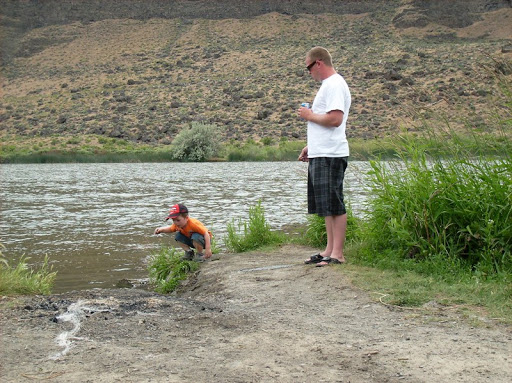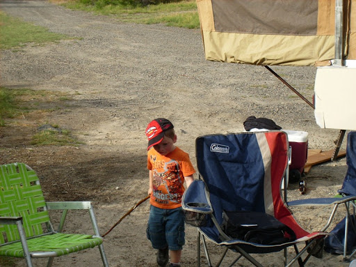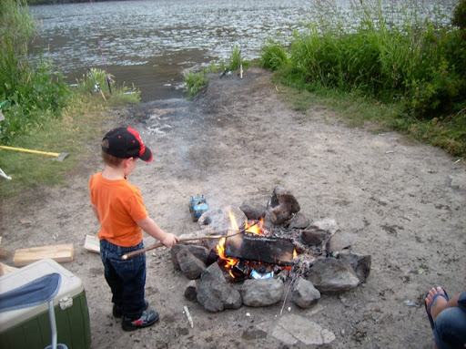 After the parade they went to friends and hung out and then decided to go camping. They fished, road in the boat where Jayse was able to drive all by himself, threw rocks & played with fire. It was a total “guys” weekend.