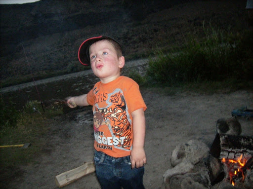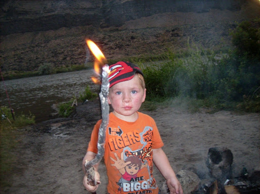 Jayse loved playing in the fire. He liked it so much that when they woke up the next morning he demanded Greg start another one for him to play in. So Greg made another fire and Jayse played in it while he packed up camp.