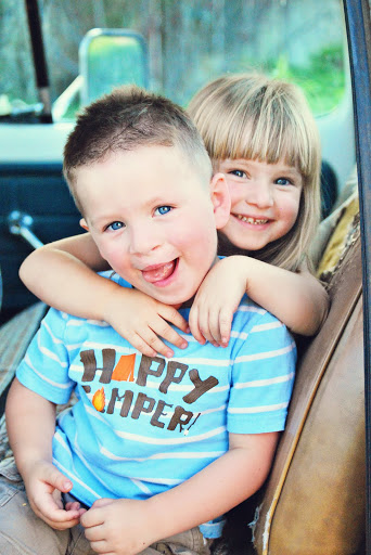 Since my mom was up here for my sisters marriage we thought it would be a good time for her to take the twins back with her for a little while so Greg and I could do a few things together. Before they left I wanted to get some cute pictures of them to look at while they were gone. They were going to be gone for 2 weeks and that is the longest we have been with out them. My mom was leaving the day after my sisters marriage so I took pictures of them after we got home from her dinner. They weren’t really into getting their picture taken so I did my new stand by – put them in Greg’s old truck. They love playing in it and there is only so far they can go. Here are a few of my favorites.
