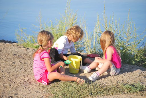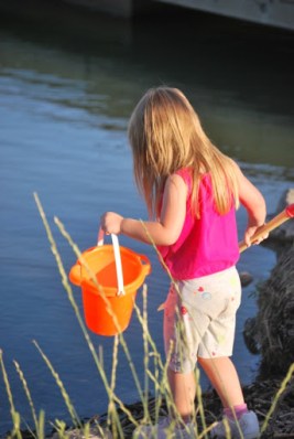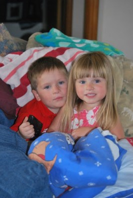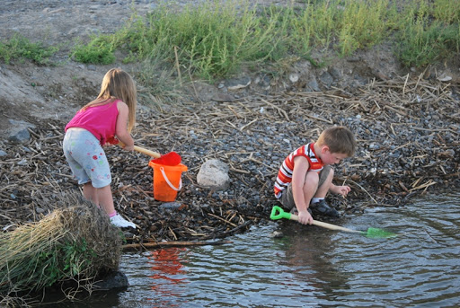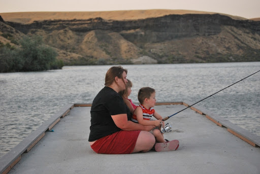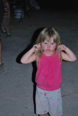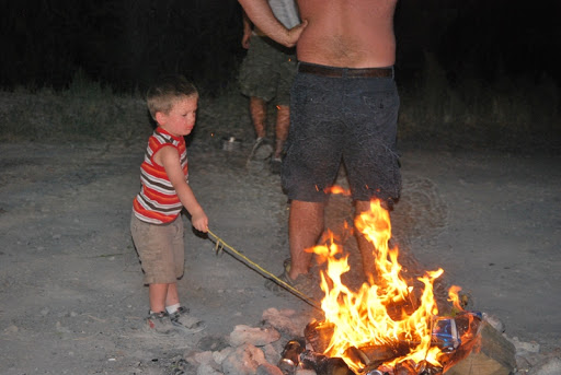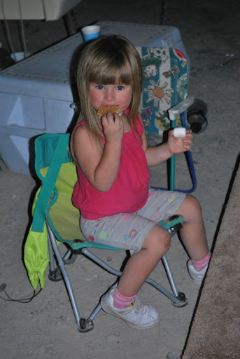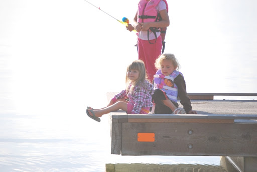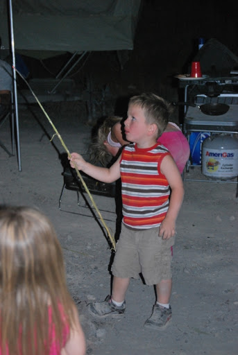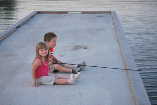 We fished from the dock and played in the dirt. We had some good BBQ and made smores when it got dark. When the fire was going Jayse was playing with sticks in it and Jaelee was hiding in the camper because she hates fire, she did make an appearance out by the fire when we started smores though. She is fine with it until it POPS and she is covering her hears and out of there. Later all the kids got together in our camper and watched Tangled.