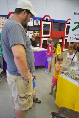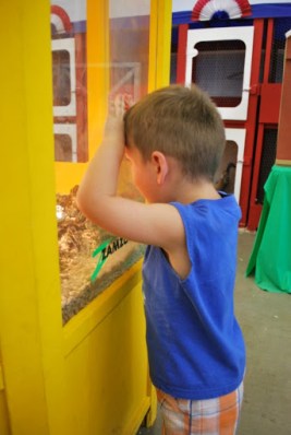 As we entered the fair a nice man gave us the rest of their ride tickets and walked away, then his little boy about 10ish came back over and offered this cute little horse he had won at the games. It was so sweet and an excellent way to start the fair. We then headed to the fair to go see my photos. I didn’t get to spend a lot of time looking at all the photos because the kids were antsy to go see other things. After the photos we headed over to the animals to see the rabbits and chickens. The kids really liked the baby chics. There were a whole bunch behind glass and there were so many of them. After the little animals we went and looked at the cows, horses & pigs.
