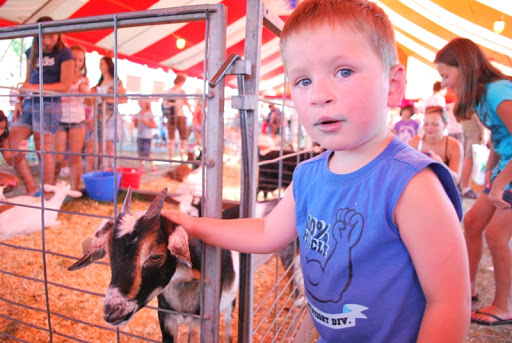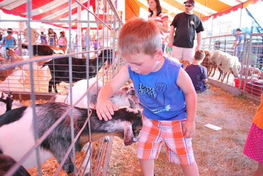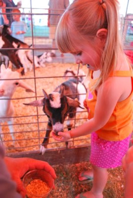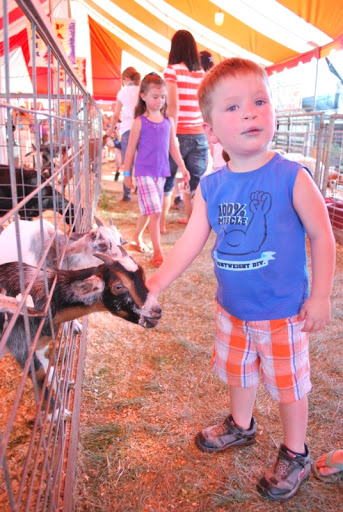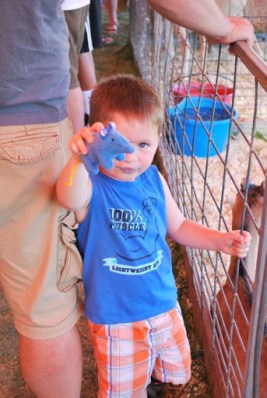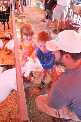 After rides, which by the way are expensive. Each ride was 3 tickets per kid and each ticket costs $1. Maybe we are just cheap but I thought it was expensive to have to pay $6 each time the kids rode a ride. Anyway after the rides we headed to the petting zoo. This is always one of Jayse’s favorite spots. He likes to feed the goats and even pet them. It takes Jaelee a minute to want to feed them but then she likes it too but only if the animals are fairly small. She does not like the big ones. We fed the goats a lot.
