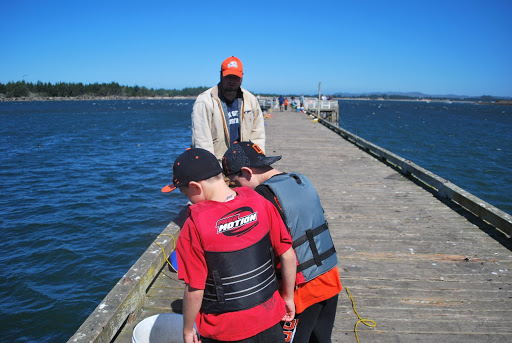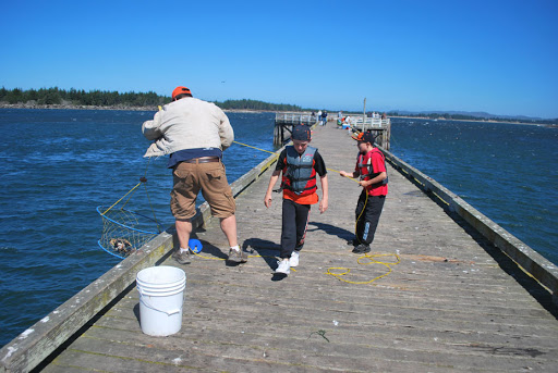 Friday Greg took Braydon and Tyler out crabbing on the dock. The kids and I were going to go to a park. We got all ready and headed to the park but they feel asleep in the car so I just drove around so they could get a good sleep and I could get familiar with driving around Reedsport. After we did several loops around town I drove out to the dock to see how Greg and the boys were doing.