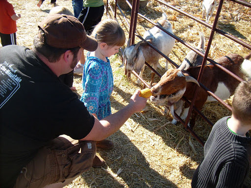 We started off playing on the slide and then made our way over to feed the goats. On our way to the goats we got a picture of Jaelee with the princess in the huge chair. Jayse did not even want to go near her.