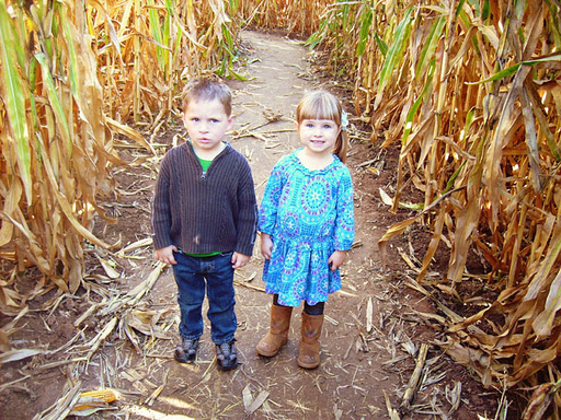 We then took a ride on a wagon being pulled by huge horses, it was a nice and bumpy ride. Then we went through the mini maze a few times. I used the opportunity to try and get some pictures of us. It was the first time we went through the maze with the twins and they really liked it We let them be in front and choose which way we went. I am glad they had a mini maze this year because it was fun. I’m not so sure I would think it was fun if it took us over an hour to get through though like the big maze does.