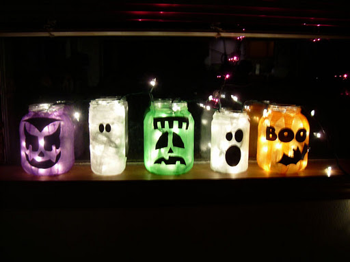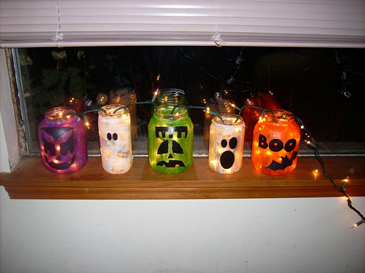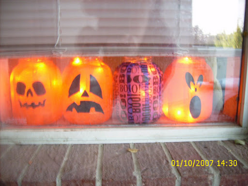 Then I worked on this Halloween craft I have been trying to do for 2 years. I saw these on a blog several years ago and wanted to do it so I saved pickle and other various jars for a year. Last year I bought the tissue paper and other supplies and did one. I put all the stuff back and saved jars for another year so I could actually do some this year. This year I finally made a whole bunch and loved the way they turned out. I am starting to think of a way I can adapt it for Christmas because I have a ton of jars left and it’s really easy to do. Here is a link for the tutorial if anyone wants to try it out: for the pumpkins for the monsters