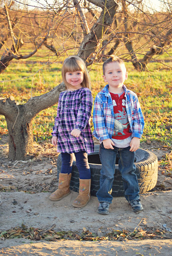 I went to Marsing to take a picture of a family that just got a horse. They wanted the horse to be in their family pictures for Christmas. I took the kids with me and they had a lot of fun. They liked the horses, the dogs and running around. After we were done we went and had pizza at a local pizza place and it was DELICIOUS. I would go out there again just to have pizza. There are also a lot of fruit orchards out there so on our way home I stopped to take a few pictures of the kids. Here they are, just so darn cute. You can tell it was super cold.