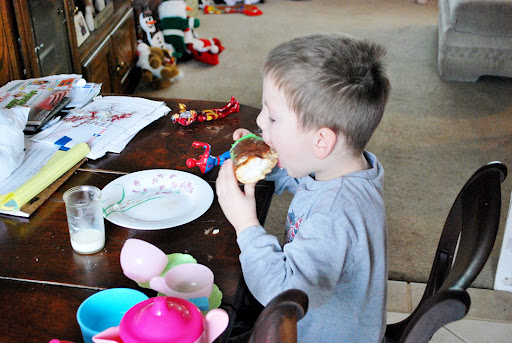The morning of Christmas Eve Greg went duck hunting with his brother and the kids and I stayed back and enjoyed our big foot doughnuts.