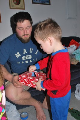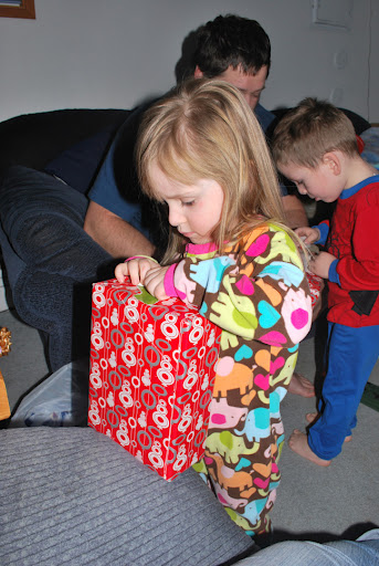 That evening we had a D-E-L-I-C-O-U-S dinner then went over to Brian & his families to hang out and open a few presents. When we got back to the house we let the kids open one present from mom and dad.