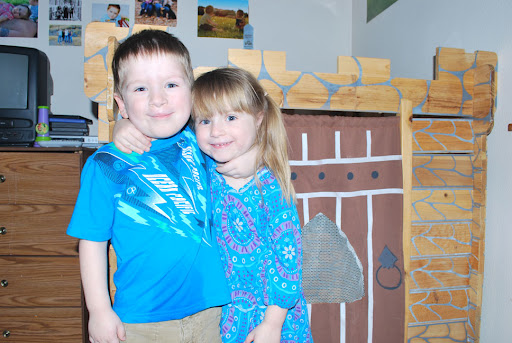 At our daycare they had this play house castle made from wood and all Jaelee wanted for Christmas was a princess castle and a doll house. My mom had the doll house part covered and we looked everywhere for a play house princess castle. A few days before Christmas our sitter text me and said they took down their castle and decided to give it to us for Jaelee. She had been looking around for a castle as well and couldn’t find one so they were just going to give us theirs. I was so happy and appreciative this castle is pretty cool. It is all wood and goes together like lincoln logs. We didn’t want to take it with us to Oregon so we put it together when we got home. Here’s a picture of the kids and their castle. By the way they posed like that I didn’t even have to ask them. 🙂