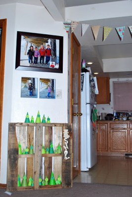 I have always loved the Holidays. We always get a tree pretty early in December and decorate it but I have never gone full blown into decorating the house for Christmas like I do for Halloween. I decided this year that since the kids are getting older I would make the house a little more Christmasee. I brought in a palette from our garage to put the little tree cone advent Calender I made out of paper on. If I can find the link for where I got the idea I’ll post it later. I also created a banner to go around our kitchen, used more pickle jars to create a lighted Happy Holidays sign and made a Merry Christmas sign to go between our media center. It looked pretty festive. Below are some pictures of our decor and random pictures of the kids.