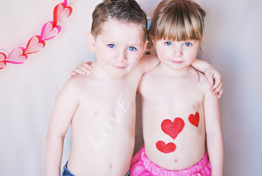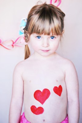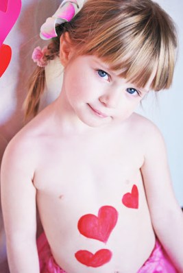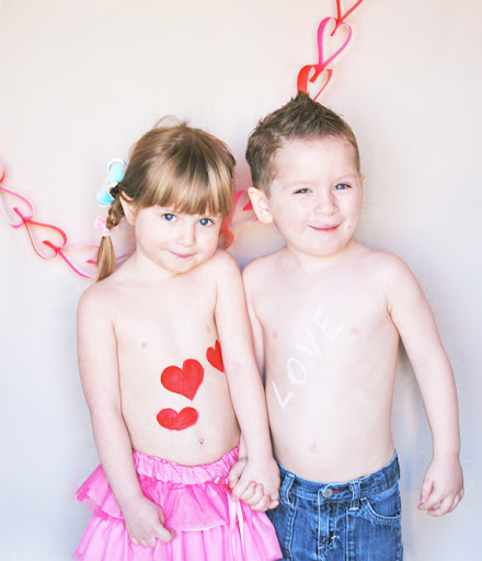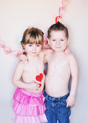 Yesterday Greg had to work so the kids and I had a busy day taking pictures and having fun. I wanted to take some valentines pictures of them and update our blog header. I had this vision of painting valentine stuff on their belly’s and taking their pictures. So that’s what we did. I made a heart valentine chain and used a painters cloth as background. Jaelee wasn’t feeling good and had a little fever but she was a good sport and let me get some cute pictures. I am really happy with how they turned out. Here are my favorites.