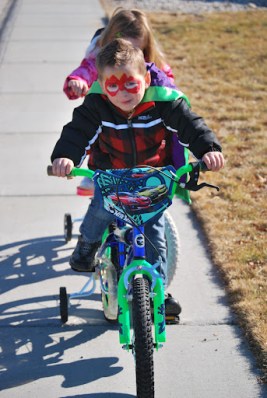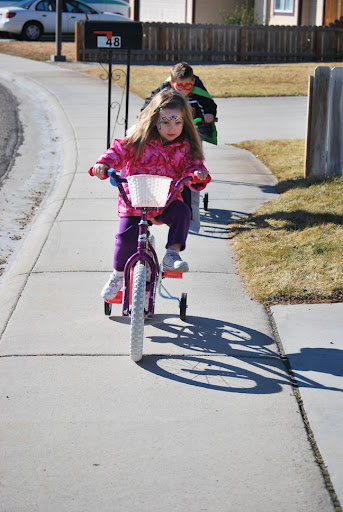 After bothering the kids with pictures for a while we went outside to ride their bikes. They have gotten so good I have to run to keep up with them.
