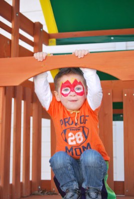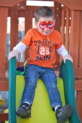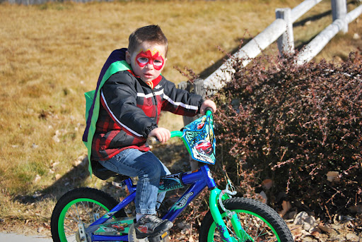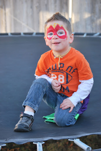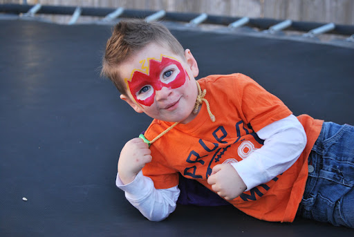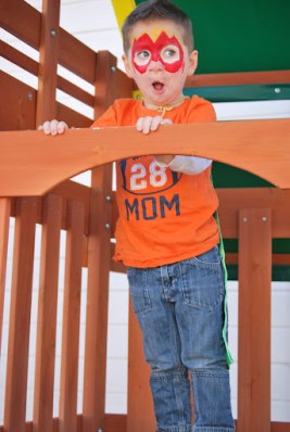 After riding their bikes we came back to the house and Jaelee laid down to take a nap. Jayse and I went outside so he could show me his super hero moves. He made some really funny faces and some cute ones.