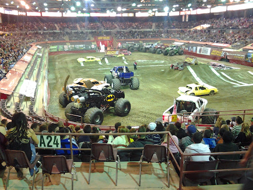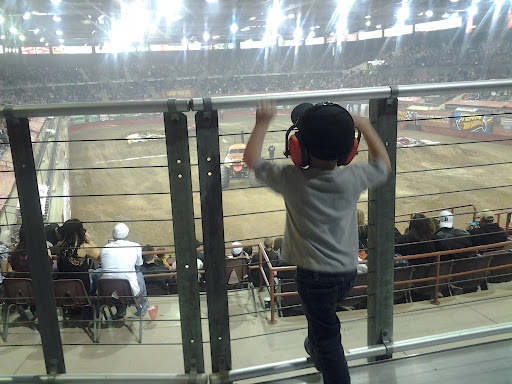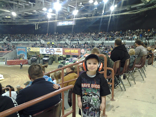 Greg and Jayse went to see the Monster Jam truck show. Jaelee hate’s loud noises – and it is super loud at these shows – so just Greg and Jayse went and had a boys night out. Jayse really liked the monster trucks. Greg bought him a t-shirt & flag that he now loves. They had a lot of fun and he was so excited when they got home.