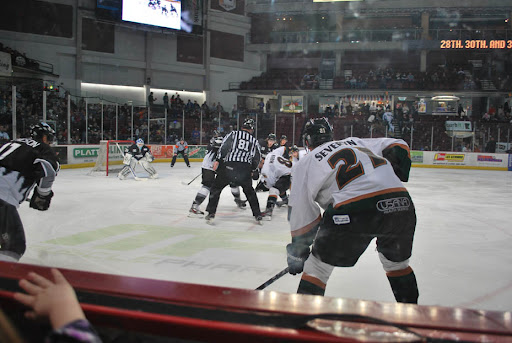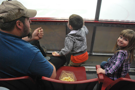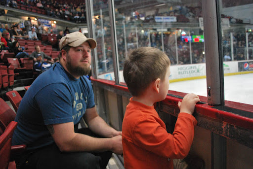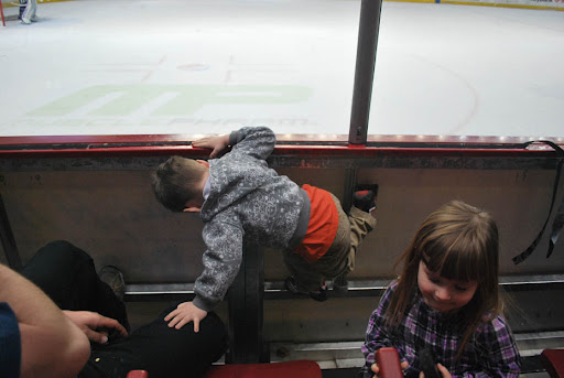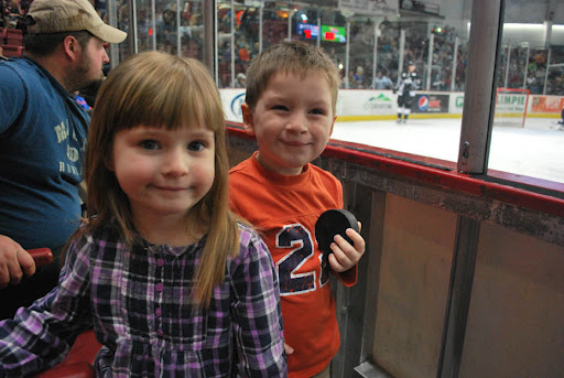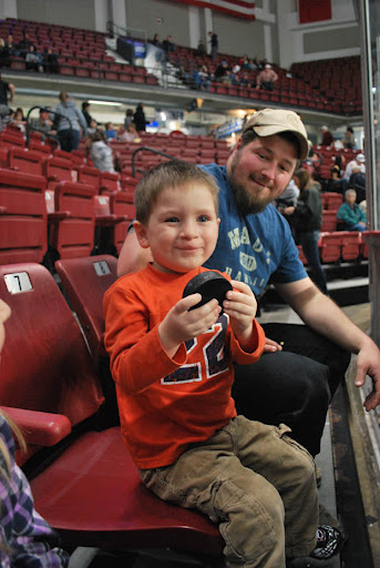 Greg scored tickets for us to go to a Steelheads hockey game. It just so happened that Greg and I went on our first date to a hockey game because I had scored a couple tickets to the game almost exactly 5 years ago to the date (2 days difference). It was fun to go and see how much the kids liked it. We were lucky enough that the seats were right by the glass so we got to see all the action up close. We got there a bit early and the players were practicing. One saw Jayse and hit a puck over the glass for him. He loves it and even took it to the sitters the next day to show everyone because he was so excited.