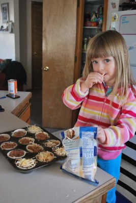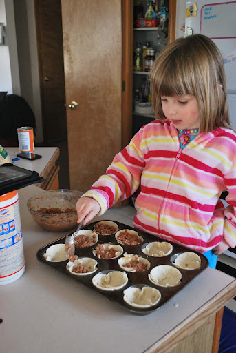 We made a meal we saw on pinterest and it was so easy that Jaelee did most of it. It was mini taco pizzas. They turned out so good. If any of you know what taco time is they taste a lot like their crisp meat burritos, yumm. She was so cute making them.
