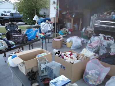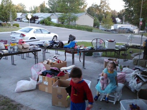 In June we had our first yard sale, I chose to have it the same weekend a subdivision next to ours was having one, hoping we could profit from their advertising and traffic. For a couple weeks we had been going through everything in our house getting ride of all the kids baby stuff, clothes that were too small, and anything else we could live without.