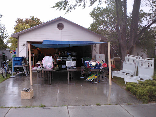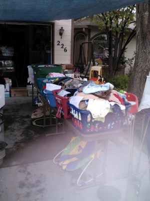 The day before our yard sale the weather predicted rain but I didn’t care I had been planning this for weeks and I thought it would be a light sprinkle. When we got up that morning it was pouring. I had Greg go to Lowe’s and buy a tarp (which already put us in the black for this stupid yard sale) to put out from our garage to cover everything. Before we even had the tarp up and everything pulled out people were waiting outside our house!