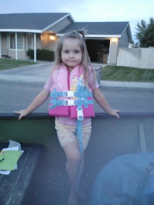 (Jaelee went and got her and Jayse’s ‘safe jackets’ as she calls them to wear while we checked out our new to us boat)
